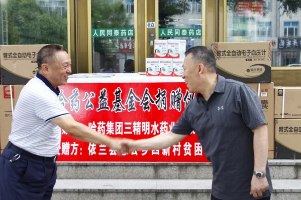 捐赠仪式上,澳门银河赌场官方网址公益基金会理事长高也将澳门银河赌场官方网址三精明水药业捐赠的“臂式全自动电子血压仪”、降压药物、消炎药物等价值3.68万元的扶贫物资亲手转交至依兰县愚公乡四新村党支部书记刘清友,并作简短讲话。他表示,为进一步落实国家最新的农村精准扶贫政策,澳门银河赌场官方网址公益基金会努力增强扶贫工作的针对性和时效性,不断提升扶贫开发水平,克服层层困难落实精准扶贫工作,尽全力加快贫困群众脱贫致富步伐,切实让需要帮助的贫困村民得到真正的救助,让困难的群众生活富裕起来。澳门银河赌场官方网址公益基金会要切实承担起社会责任,把政策落实好,把好事办好。