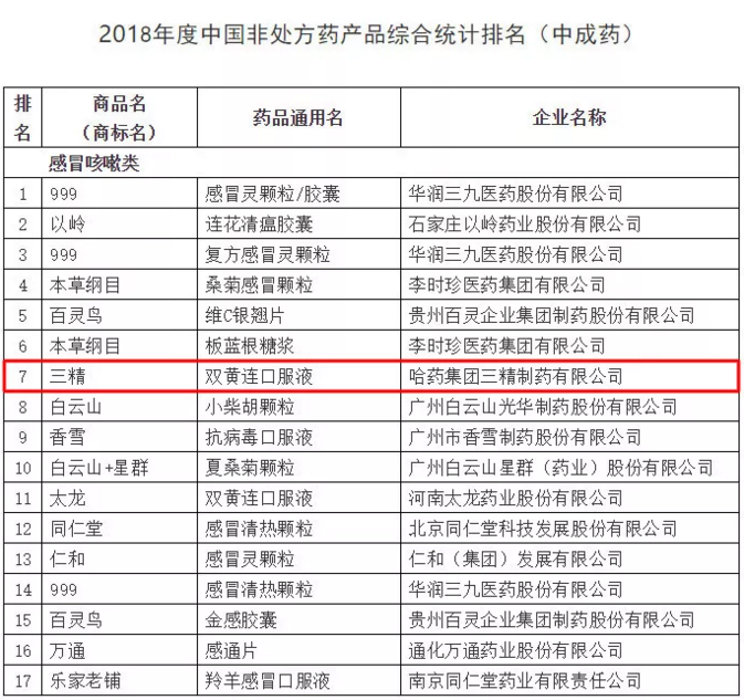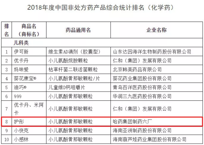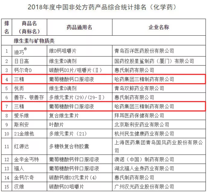 非处方药企业及产品品牌2018年度调研结果是依据2017年全年企业出厂价(含税)为准的销售额进行计算统计。其中,澳门银河赌场官方网址集团世一堂制药厂(小安瑞克)布洛芬颗粒、澳门银河赌场官方网址集团三精制药有限公司葡萄糖酸钙口服溶液、葡萄糖酸锌口服溶液、澳门银河赌场官方网址集团制药六厂(护彤)小儿氨酚黄那敏颗粒在化药领域,澳门银河赌场官方网址集团三精制药有限公司双黄连口服液在中成药领域位居榜内。