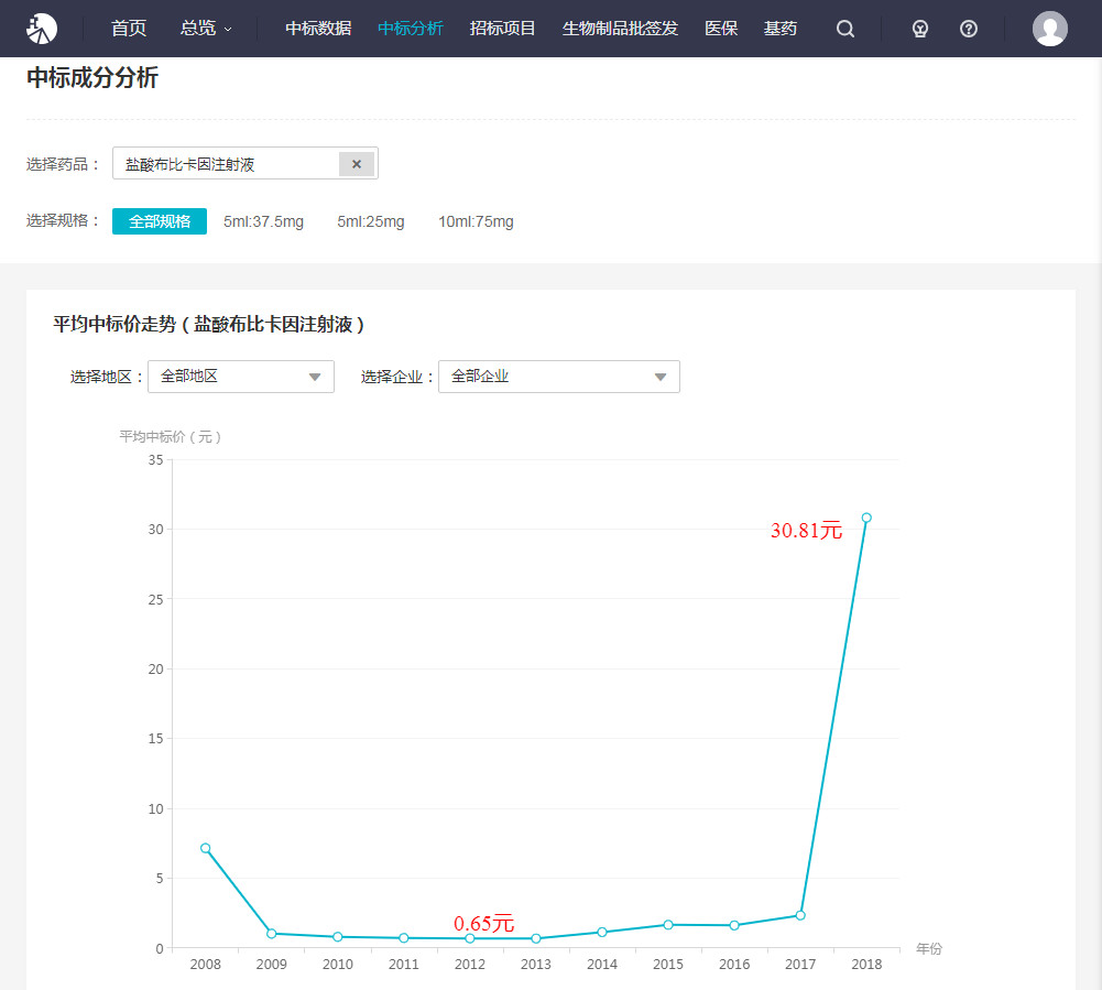 △ 布比卡因:较最低价格上涨 47.4 倍
