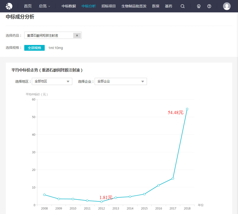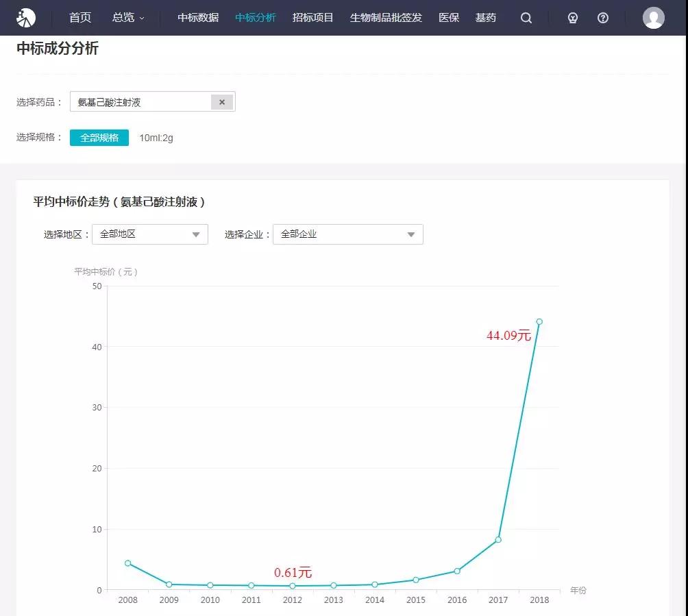 对照上表我们可以看到,碘解磷定的价格,也已经从1.94元/支涨到98/支,涨价幅度将近50倍。