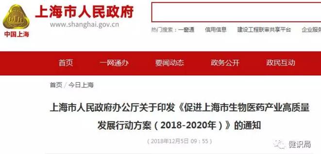 12月5日,上海市政府网发文,公布一系列鼓励当地生物医药产业发展政策,并树立目标:到2020年,产业规模要达到4000亿元;申报上市药品50个以上;申报上市三类医疗器械产品100个以上。