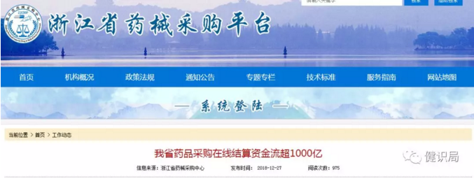 2018年12月27日,浙江省药械采购平台发布“三流合一”成绩单