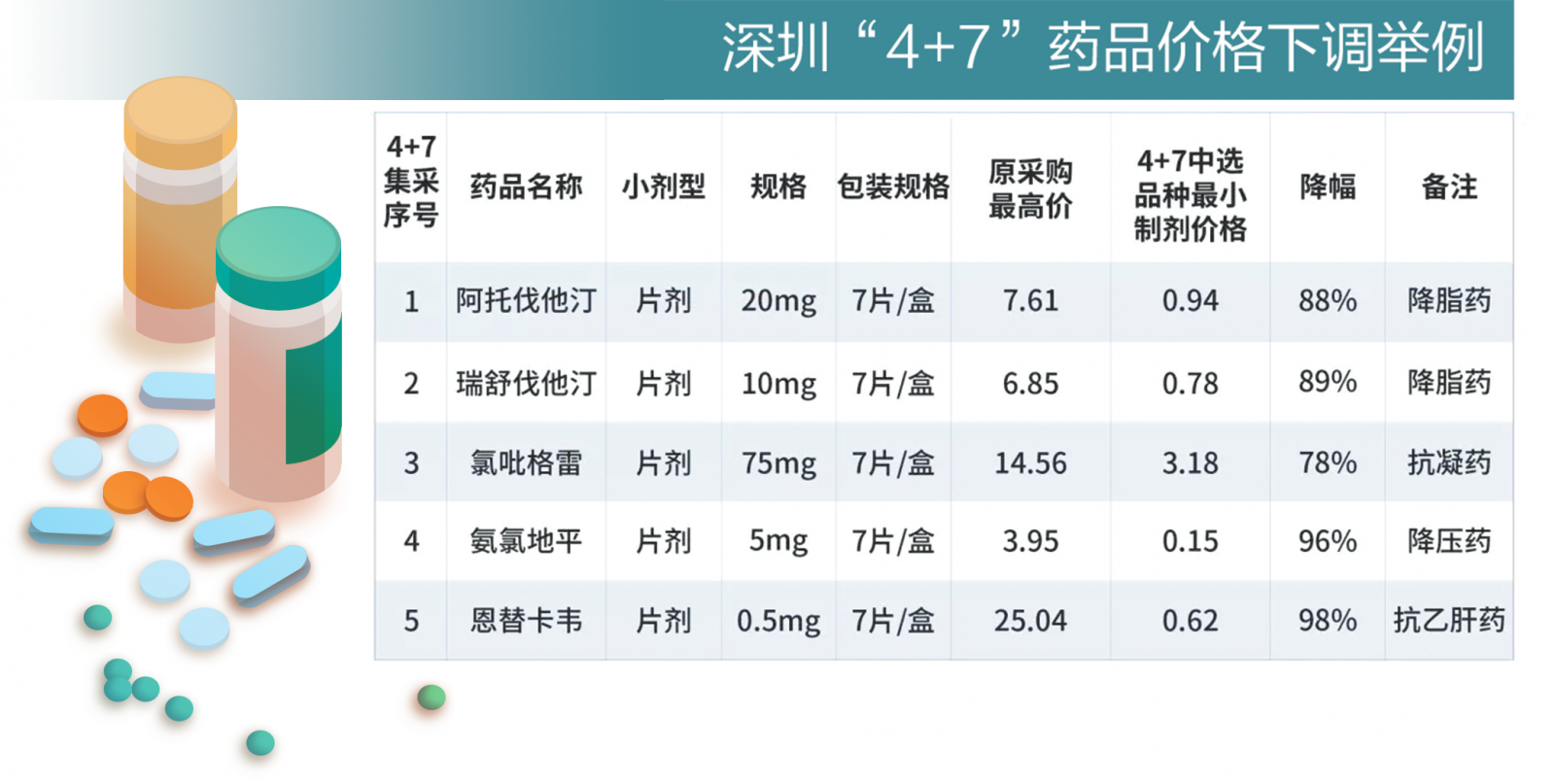 以高血压患者常用的氨氯地平,每片药的价格也由之前的3.95元降低至0.15元,降幅为96.20%。