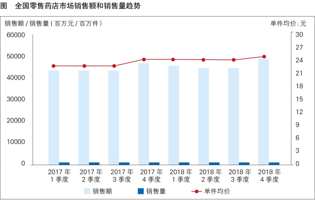 2018年,非处方药(OTC)和处方药的销售份额分别占到整体零售药店市场的43%和45%,其中处方药增速更快,同比增长6.9%。在非处方药和保健食品市场,中成药占据55%的份额,但增速缓慢,仅为1.2%。西药占零售处方药市场的74%,增速达8.1%,是主要的增长贡献来源。