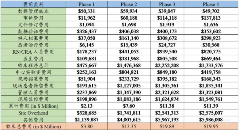 我们来看一组数据,知名医药咨询公司Igeahub此前对美国开展临床试验预计的成本构成分解,统计结果如下: