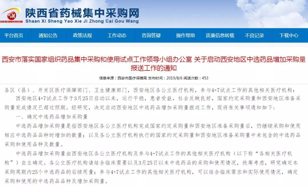 西安确定中选药品增加采购量