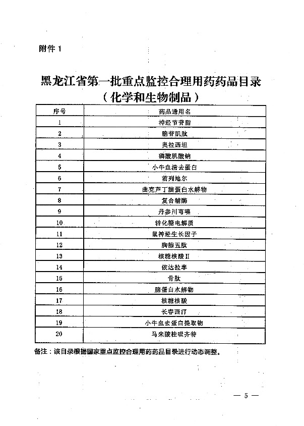 《通知》要求,黑龙江省各市级卫生健康部门应结合《关于落实好加强药事管理转变药学服务模式各项工作的通知》的相关要求,根据已制定的市级《辅助用药目录和重点监控药品目录》进行调整,出台新的《重点监控药品目录》(以下简称《市级目录》)。
