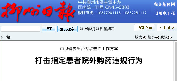 比如,3月14日,柳州市卫健委出台《柳州市医疗机构医务人员违规指定患者院外购买药品(耗材)行为专项整治工作方案》。