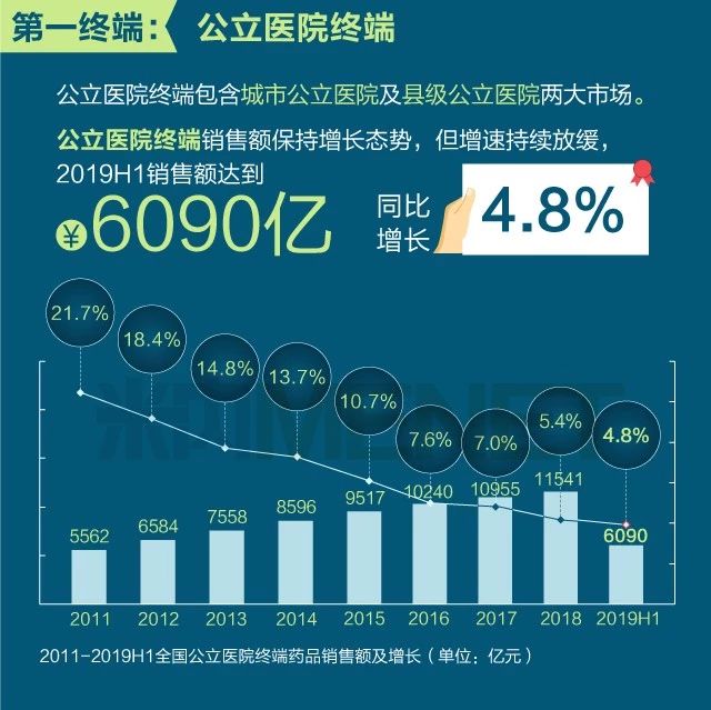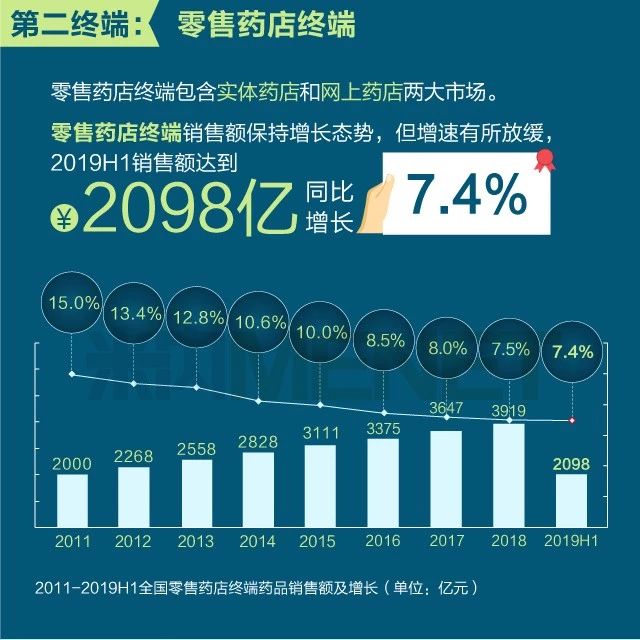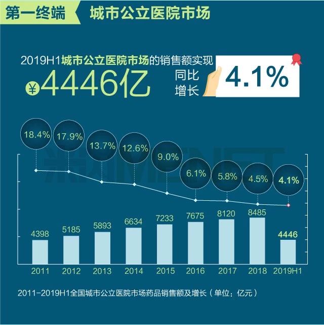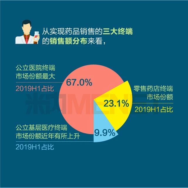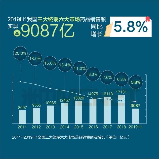 2019年上半年我国三大终端六大市场药品销售
