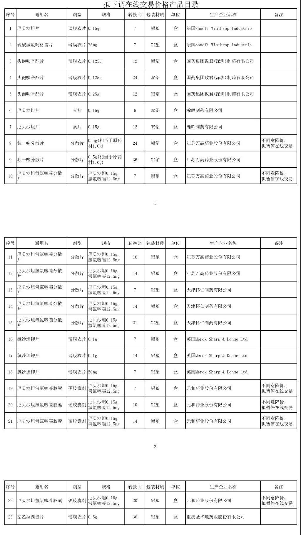 浙江省发布《通知》,明确厄贝沙坦片、硫酸氢氯吡格雷片、头孢呋辛片、独一味分散片等多个品种,拟于10月31日之后产生全国最低价格之后进行价格调整,并点名万高药业、元和药业等“不同意降价拟暂停在线交易”。