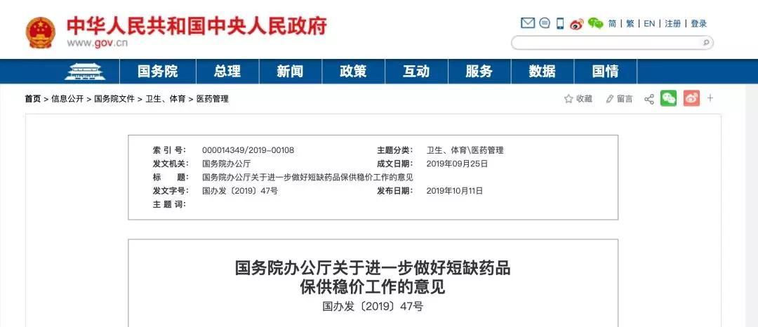 医药网10月12日讯 刚刚,国务院发文,六个方面做好短缺药品保供稳价工作。