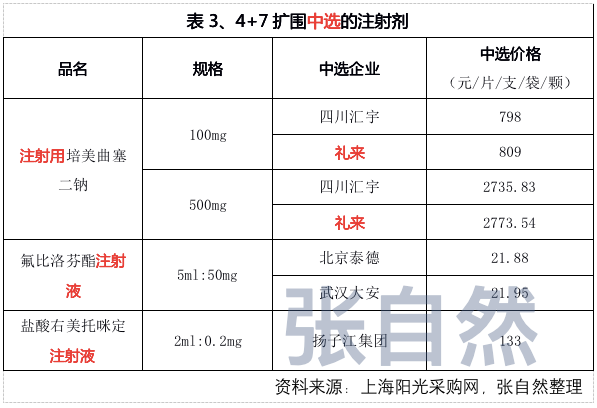 本次4+7扩围带量采购有5家企业的3个注射剂中选。