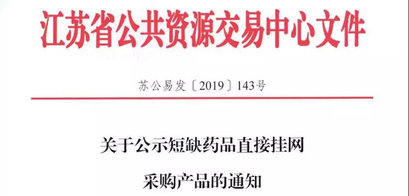 通知显示,根据江苏省医保局《关于做好短缺药品的采购通知》,省有关部门对短缺药品直接挂网采购企业申报的资质材料进行了审议,现将符合要求的短缺药品直接挂网采购产品予以公示,公示期为2019年11月21日至11月27日17:00。