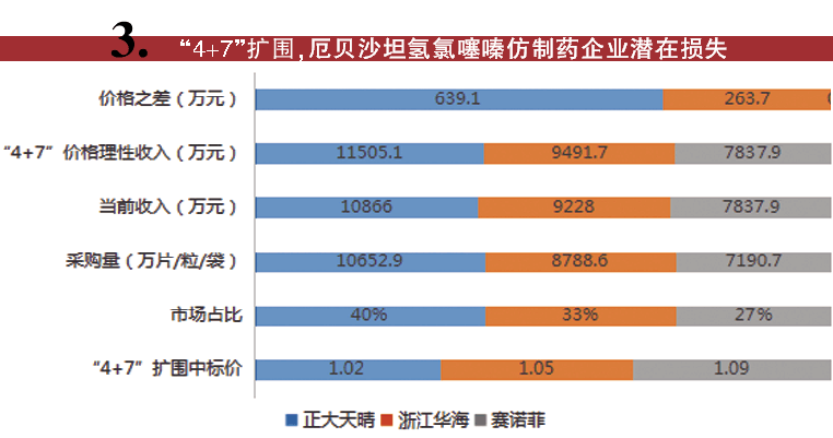 二是两家中标情况,如氟比洛芬酯、福辛普利、孟鲁司特、帕罗西汀、培美曲塞(100mg)、伊马替尼、左乙拉西坦等7种药品有两家中标。