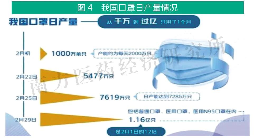 我国是全球最大的口罩生产国和出口国,每年出口数量稳定在生产规模的70%以上,在疫情爆发之前中国每天生产2000万只口罩,年产量占全球约50%;疫情发生之后,中国口罩生产能力快速提高,现每天生产量超过1.2亿只,其中N95级别的口罩每日产能也达到了160万只。
