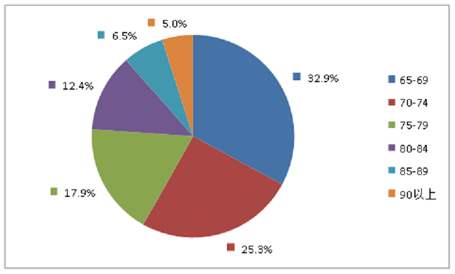 2019年老年患者药品不良反应/事件报告中,男女患者比为0.95:1。老年患者年龄分布中65-69岁老年患者报告占32.9%,70-74岁老年患者报告占25.3%(图15)。