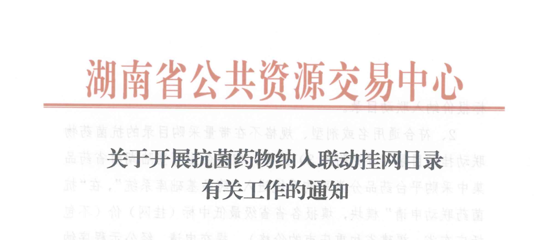 医药网4月24日讯 4月22日,湖南省发布《关于开展抗菌药物纳入联动挂网目录有关工作的通知》称,经申报审核,700余个抗菌药符合纳入抗菌药物联动挂网目录有关规定,现予以公示,包括75个参与了本次抗菌药物专项集中采购的未中选药品和674个参与了湖南省2019年度药品省际价格联动的药品。而原有已挂网且不在抗菌药物中标或联动挂网目录内药品将停止挂网,时间另行通知。